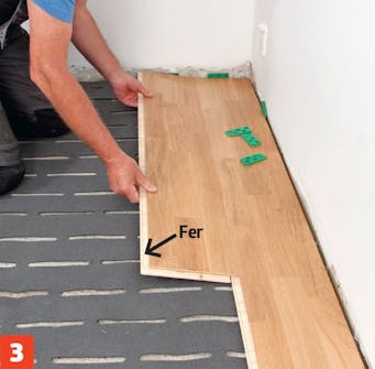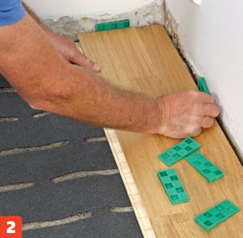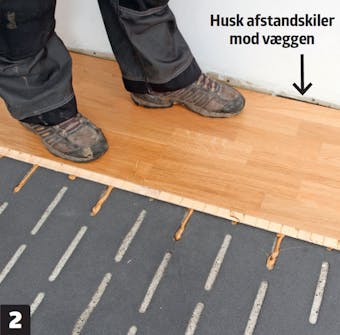 Brædderne skal holde en afstand på mindst 1 cm til vægge og faste genstande som fx rør. Det gøres nemmest med plastkiler, fordi de sætvis kan justeres i tykkelsen.