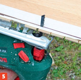 Skær med et stemmejern den forreste forhøjning af feren, hvis det sidste bræt ikke kan vippes på plads. Kom lim på samlingen.