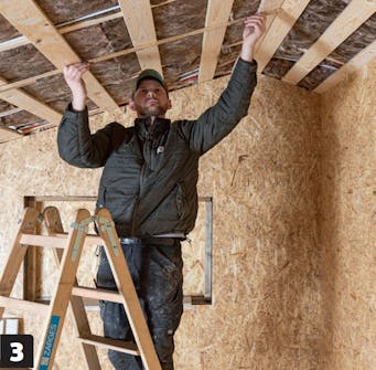 I kippen starter vi også med plader i fuld længde og laver først tilskæringerne mod endevæggene til sidst.