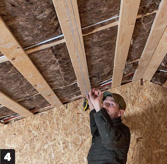 Markér midten af loftet i top og bund, og slå derefter en kridtstreg på tværs af alle forskallingsbrædderne.