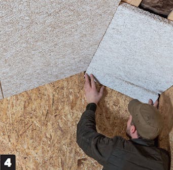 Den første plade monteres i anden række fra kippen. Det vil sige, at der startes med en hel plade. Den første pladerække startes i øvrigt fra midten af. Midten af pladen flugter derfor med den midterstreg, som går på tværs af alle forskallingsbrædderne. Kanten af pladen sættes efter midterstregen på brættet.