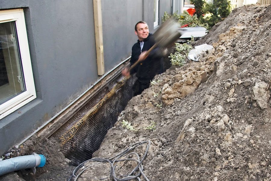 Et omfangsdræn holder huset tørt, men det er dyrt og hårdt at etablere. Før du går i gang med at grave ud langs huset, skal du huske at alliere dig med en autoriseret kloakmester. Priserne starter fra 25.000 kroner.