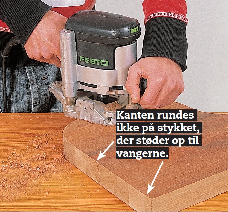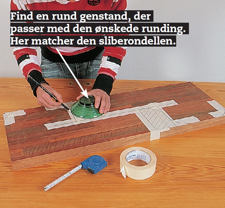 Lav en kantslibemaskine med boremaskine, borestander, sliberondel og et stykke plade. Slib trinenes kanter. Alternativt må du slibe i hånden.