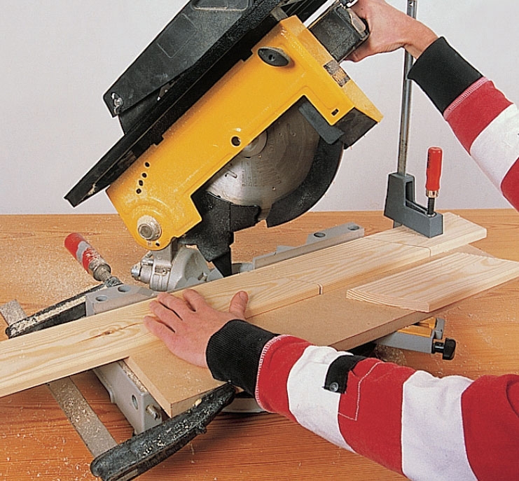 Skær bordpladen op i seks lige store trinplader a 100 x 30 cm. Med en rundsav og en føringsskinne eller et lige bræt går det hurtigt.