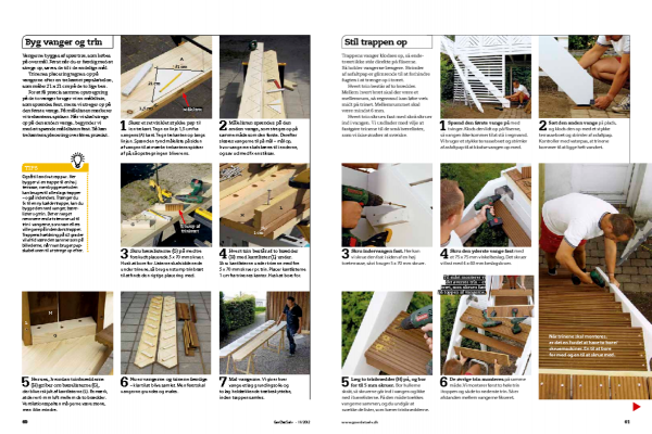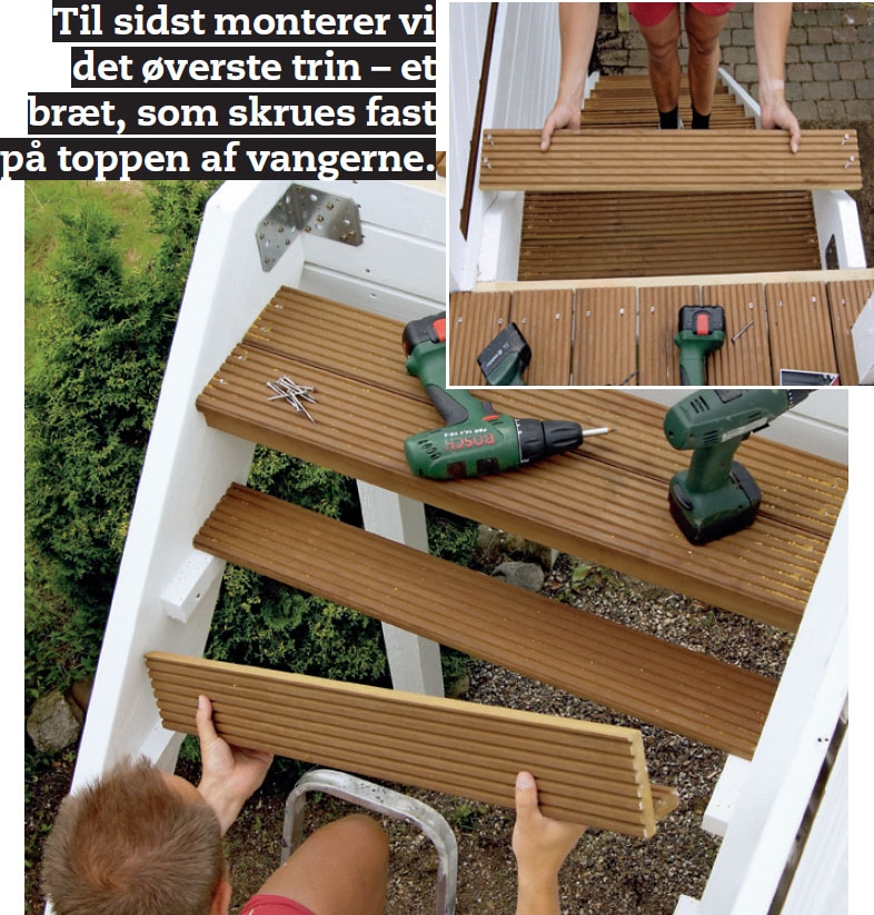 Hvert trin består af to brædder. Mellem hvert bræt skal der være et mellemrum, så regnvand kan løbe væk midt på trinet. Mellemrummet skal være mindst 6 mm.