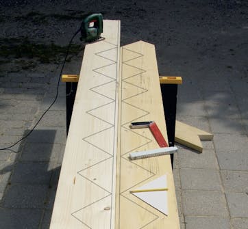Vangerne bygges af spærtræ, som købes på overmål. Først når du er færdig med at strege op, saves de til i de endelige mål.