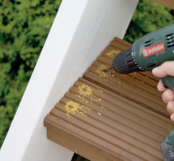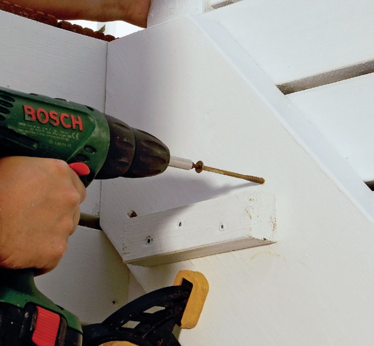 Undervejs skal du bruge store skruer, og nogle steder skal du skrue tæt på ende træ, så det er vigtigt at bore for.