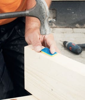 TIPS: En afstandsbrik (3 mm) bag beslaget giver plads til bevægelse, hvis træet er skævt.