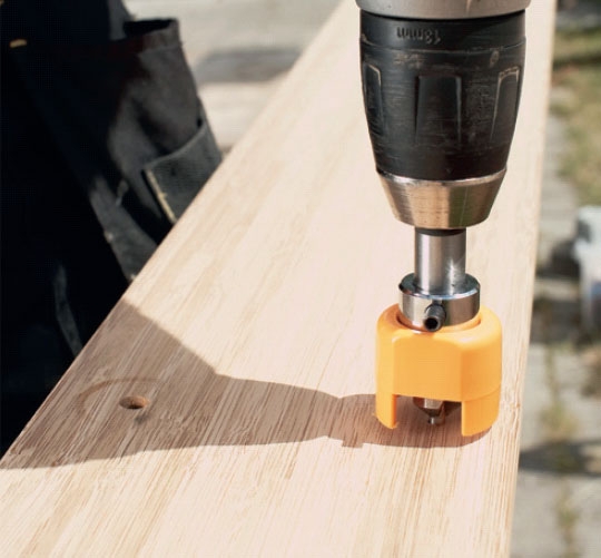 Bor for til skruer i terrassebrædderne. Marker forinden, hvor vangerne er placeret. Brug en undersænker med stop, så du kan undersænke skruerne uden at lave for dybe huller.