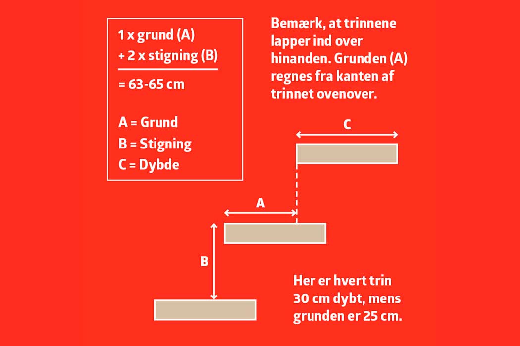 Forberedelsen er vigtig. Tømreren kalder det “opsnøring”, men egentlig er det bare en tegning i 1:1, som du skal bruge til at save ud efter og til at placere trinnene efter.