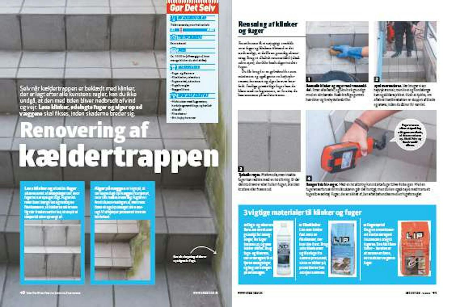 Tjek også klinker, der umiddelbart ser intakte ud. Er der en hul lyd, når du slår med fx et hammerskaft, så er der et hulrum, hvor vand kan trænge ind og sprænge klinken i frostvejr. Og så skal klinken op, renses af og lægges igen i ny fliseklæber.