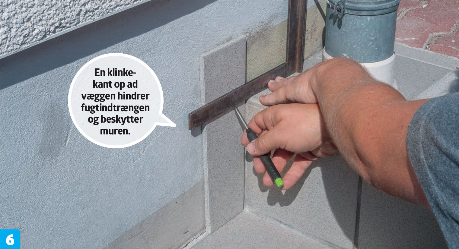 Hvis en klinke er knækket, kan der trænge vand ind under den. Derfor skal den skiftes ud, inden fugten spreder sig.