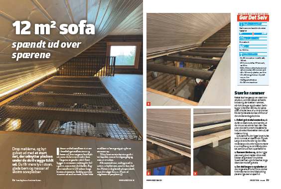 Gulvplankerne, der ligger langs hullet midt i rummet, er stærke nok i sig selv. Langs de to korte sider og den resterende lange side under taget monterer vi 4 cm tykke og 15 cm brede fyrplanker, som skrues fast i spærfødderne.