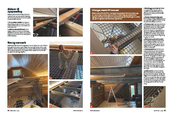 Nettet lægges først løst ud. Nettet er meget fleksibelt og ser småt ud, og derfor skal det først foldes ud og placeres midt i hullet, så det hviler på spærfødderne.