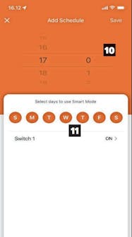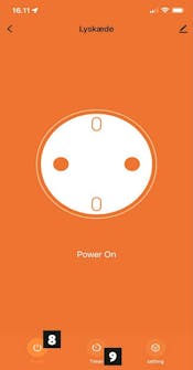 - Nu kan du flytte dit stik ud på sin rette plads. Orange baggrund på skærmen betyder tændt, grå slukket. Tænd og sluk på “knappen” [8], og opsæt en tidsstyring på [9].
