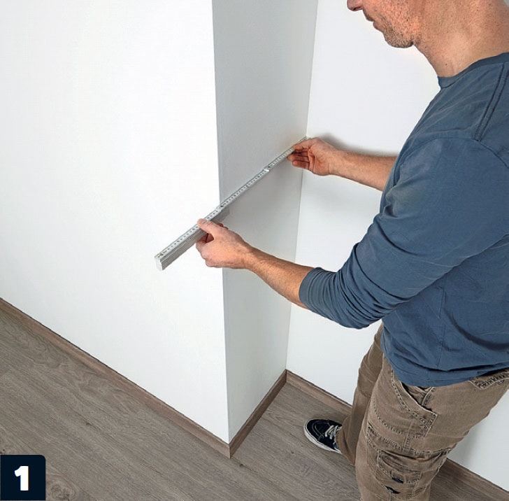 Vi skal forholde os til både et indvendigt hjørne og et udvendigt hjørne. Vi måler afstanden fra det indvendige hjørne til det udvendige hjørne.