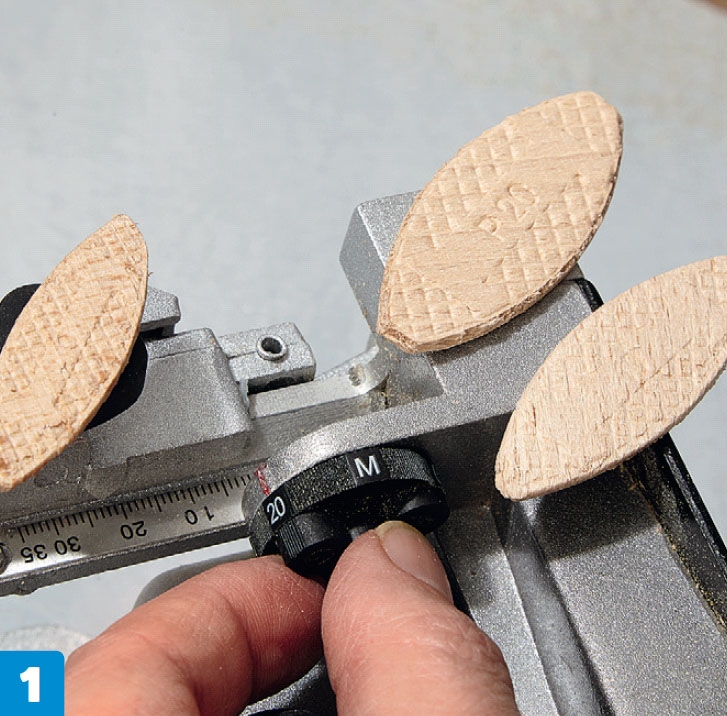 Maskinen indstilles. Med fiskemaskinen kan du indstille, hvor dybt der skal fræses. Her vælger vi en dybde på 20 mm, fordi vi bruger P20-fisk til samlingen.