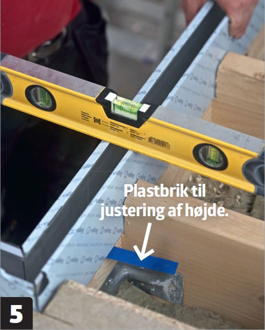 Stil skinnerne på plads. Vi stiller dem på det forsænkede spærtræ. Normalt stilles de direkte oven på gulvet.