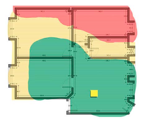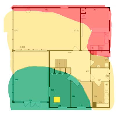 I en lejlighed er et af værelserne afskærmet fra routeren bag hele to bærende vægge. Det gør forbindelsen til nettet dårlig i værelset, men det problem løste vi med en repeater.