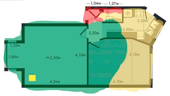 Vi brugte en ny og moderne router til at løse dækningsproblemerne i en lille toværelses lejlighed, hvor signalet var særlig dårligt i køkkenet, der er længst væk fra routeren.