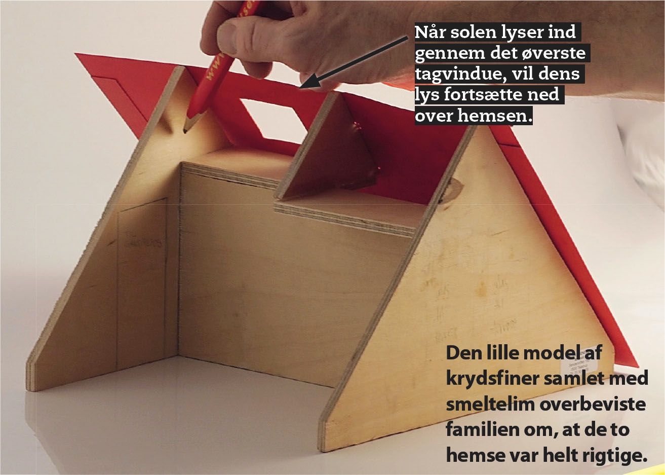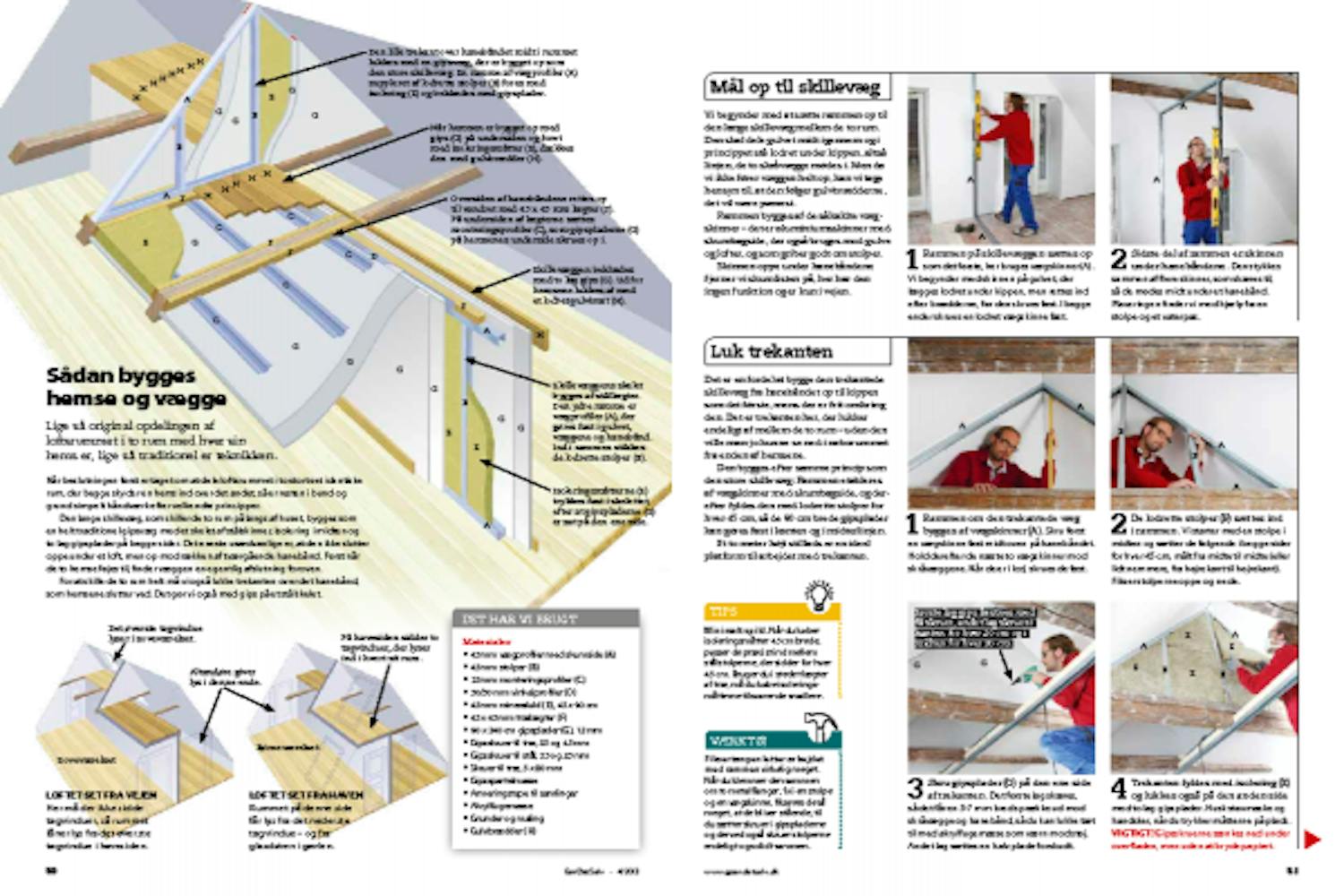 Det ser avanceret ud, men det er nærmest lettere at knække skillevæggen over i en hems, end det er at føre den helt op i kippen i spidse vinkler.