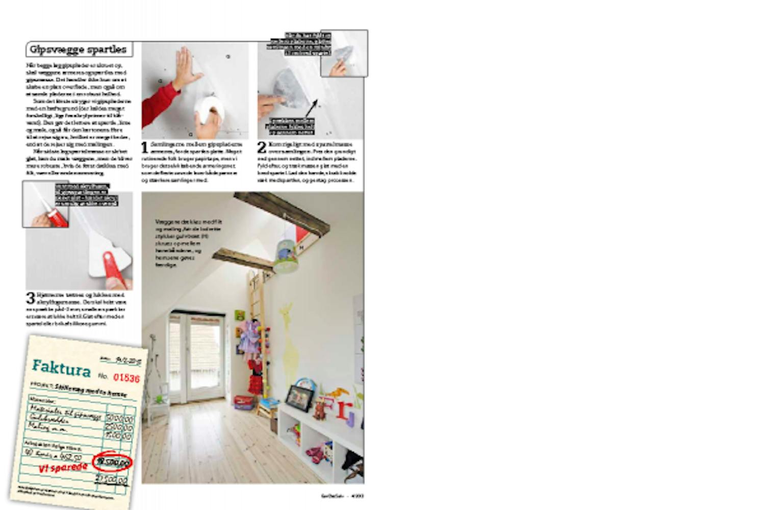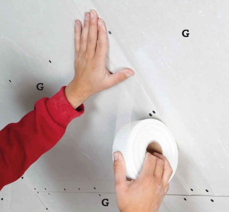 Samlingerne mellem gipspladerne armeres, før de spartles glatte. Meget rutinerede folk bruger papirtape, men vi bruger det selvklæbende armeringsnet, som de fleste uøvede laver både pænere og stærkere samlinger med.