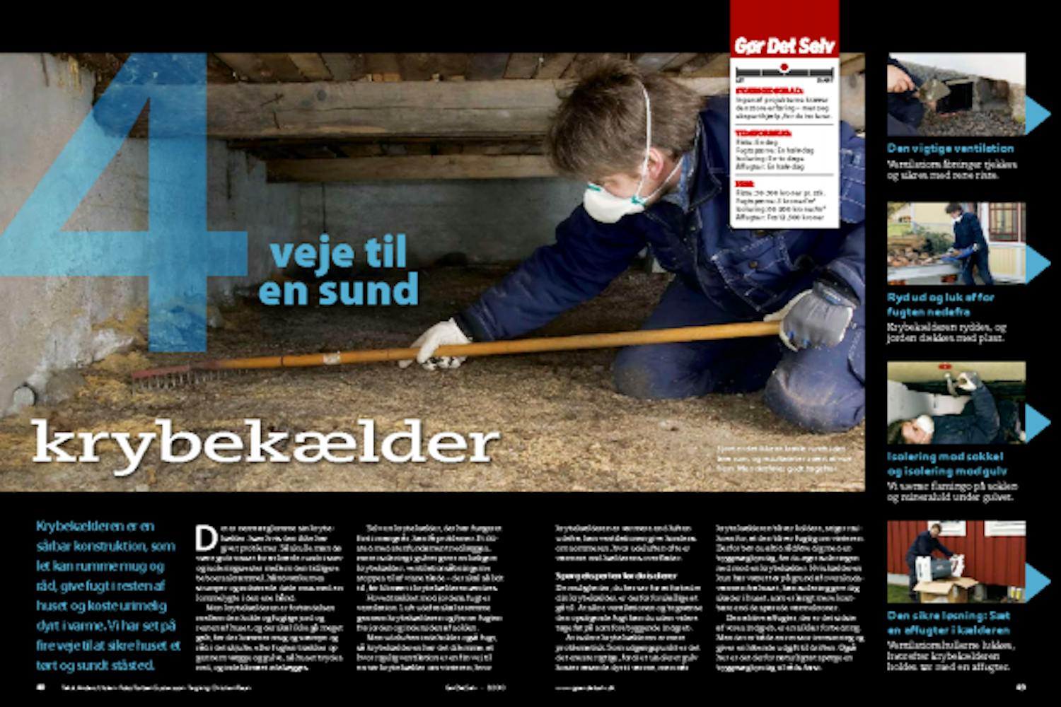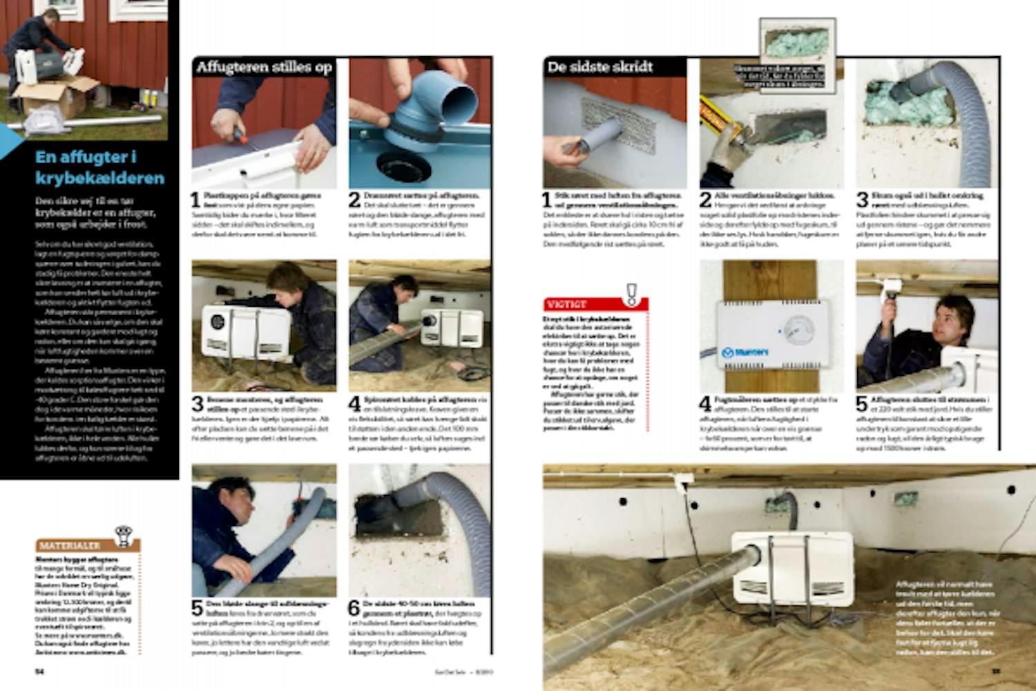Den sagkyndige kan foreslå andre tiltag. Ventilationen kan forstærkes med et aftræk op over taget. Soklen kan isoleres på ydersiden. Du kan holde fugtigheden nede med en affugter som vist på de næste sider. Og krybekælderen kan helt erstattes med et nyt terrændæk.