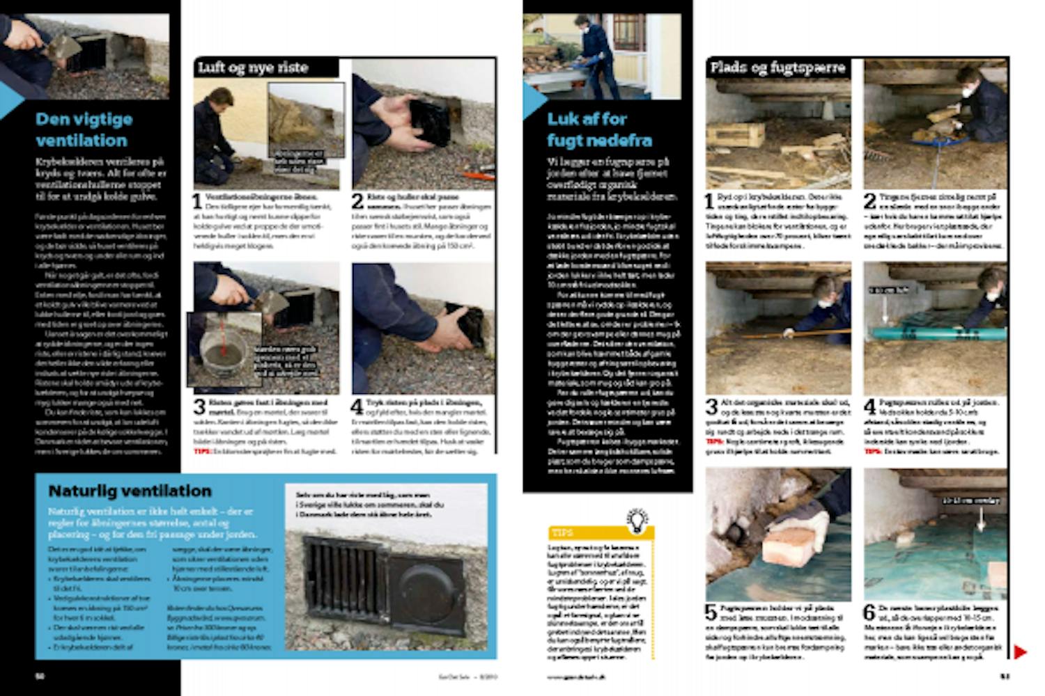 Krybekælderen ventileres på kryds og tværs. Alt for ofte er ventilationshullerne stoppet til for at undgå kolde gulve.