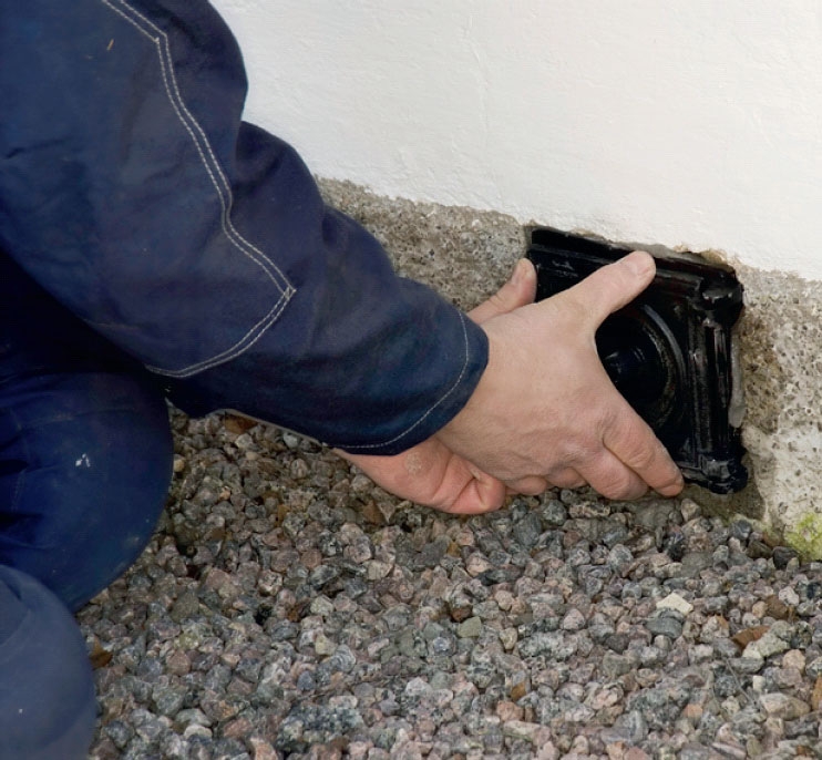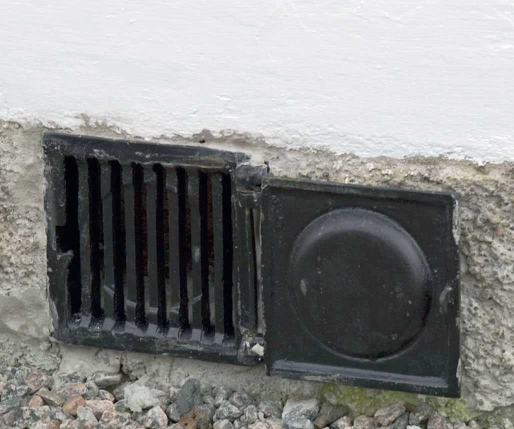 Når noget går galt, er det ofte, fordi ventilationsåbningerne er stoppet til. Enten med vilje, fordi man har tænkt, at et koldt gulv ville blive varmere ved at lukke hullerne til, eller fordi jord og græs med tiden er groet op over åbningerne.