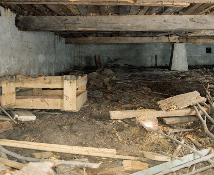 For at kunne komme til med fugtspærren må vi rydde op i kælderen, og det er der flere gode grunde til. Det gør det lettere at se, om der er problemer - fx om der gror svampe eller dannes mug på overfladerne. Det sikrer den ventilation, som kan blive hæmmet både af gamle byggerester og af ting sat til opbevaring i krybekælderen. Og det ferner organisk materiale, som mug og råd kan gro på.