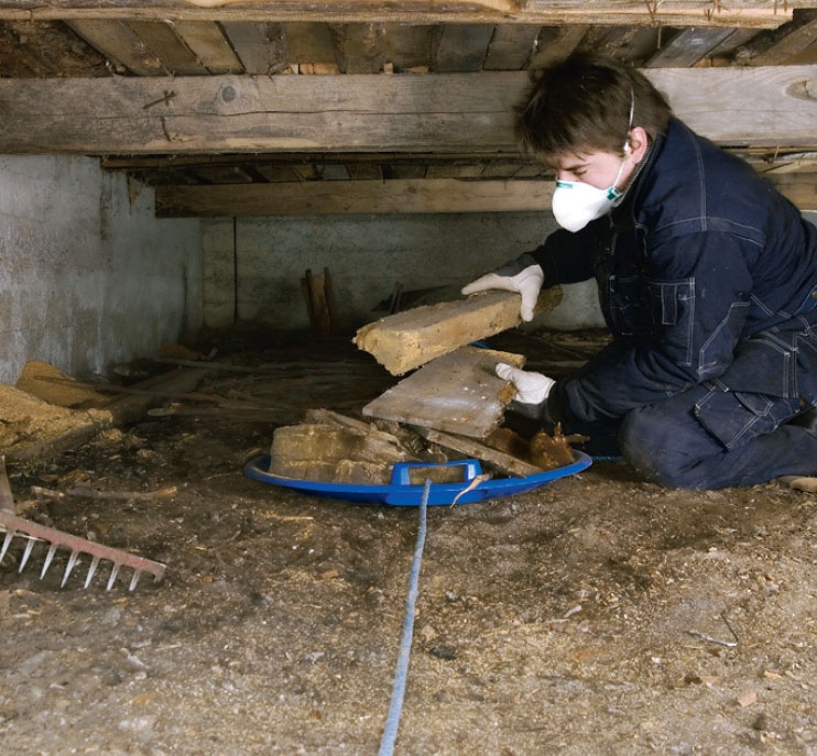 Ryd op i krybekælderen. Det er ikke usædvanligt at finde rester fra byggetiden og ting, der er stillet ind til opbevaring. Tingene kan blokere for ventilationen, og er luftfugtigheden over 70 procent, bliver træet til føde for skimmelsvampene.