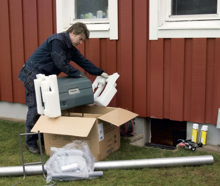 Benene monteres, og affugteren stilles op et passende sted i krybe kælderen. Igen er der hjælp i papirerne. Alt efter pladsen kan du sætte benene på i det fri eller vente og gøre det i det lave rum.