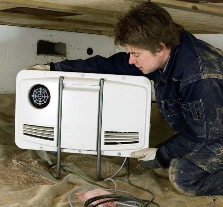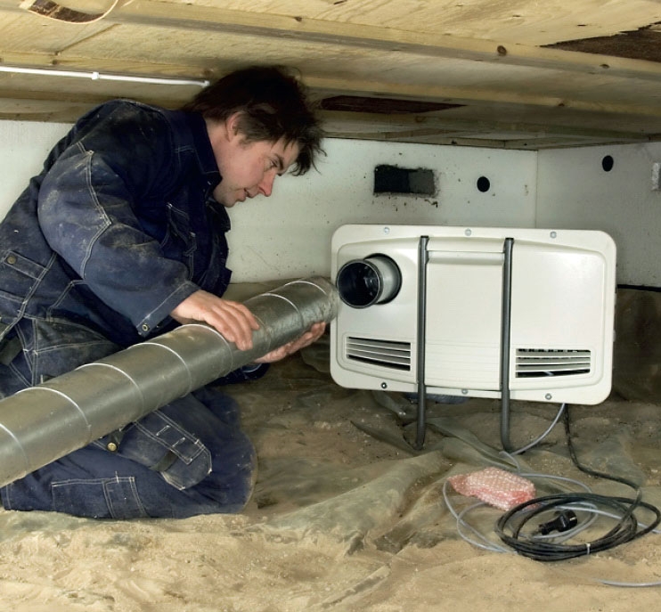 Den sikre vej til en tør krybekælder er en affugter, som også arbejder i frost.