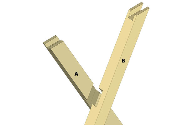 Den solide bladsamling på midten skabes ved at fjerne halvdelen af tømmeret i snitfladen på begge stykker træ. Skær de tværgående snit med en god håndsav, og stem så resten af materialet ud med et skarpt stemmejern.