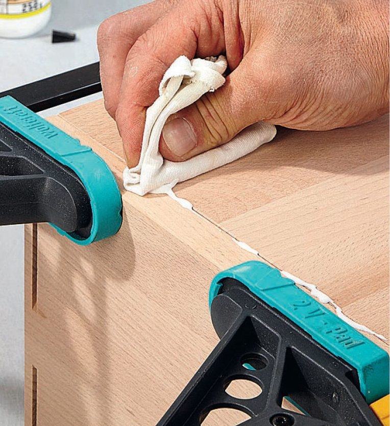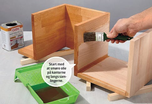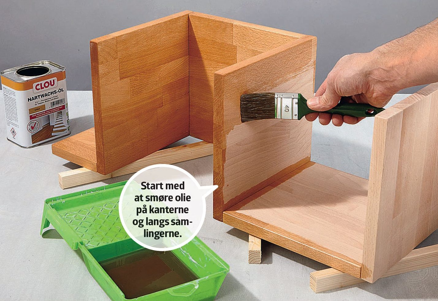 Påfør olie med en pensel, når limen er tør. Overfladen skal være ren inden. Polér efter med en tør klud. Lad det hvile et kvarter, og fjern så overskydende olie.