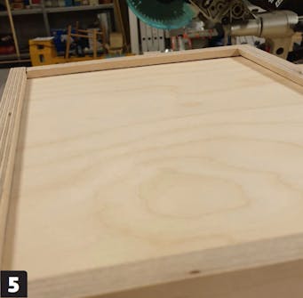 Bundpladen limes ned i rillen, når kassen samles. Når siderne, bagpladen og fronten er sat sammen, er bundpladen låst og behøver derfor ikke yderligere fastgørelse.