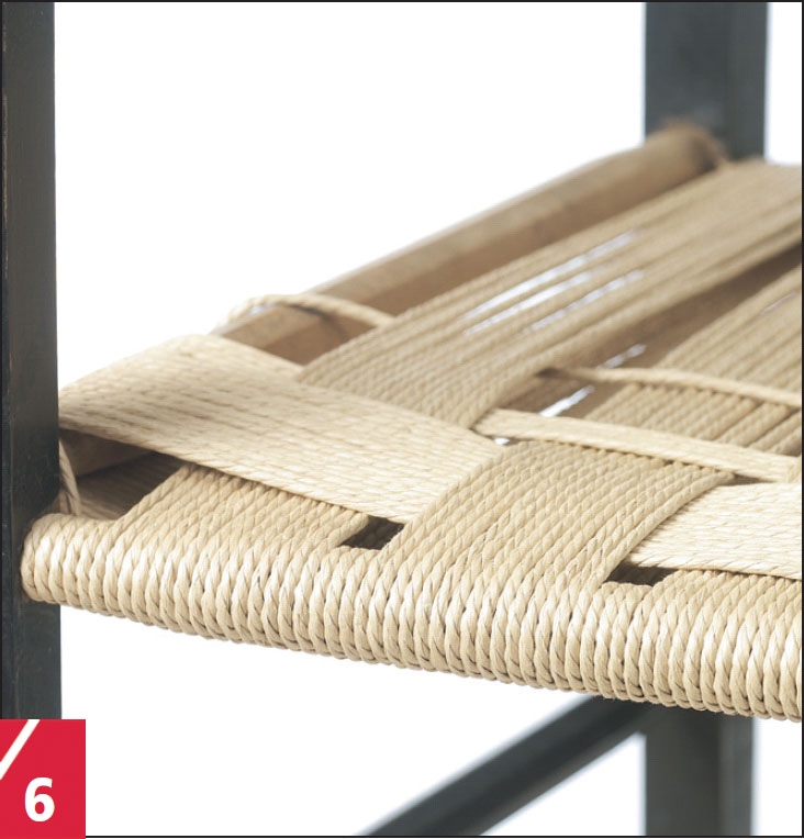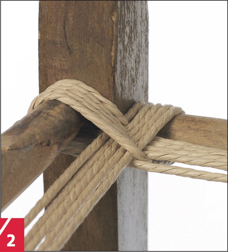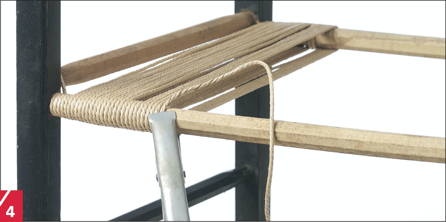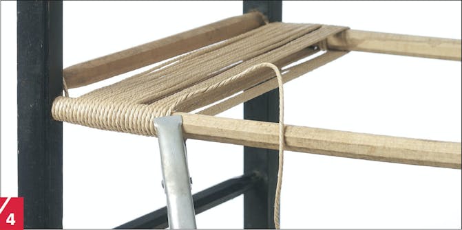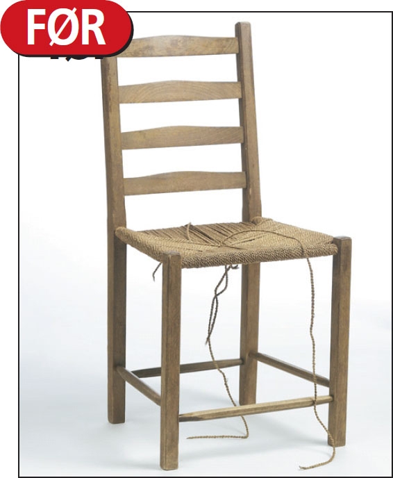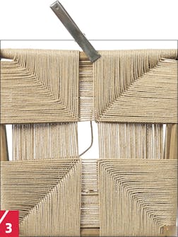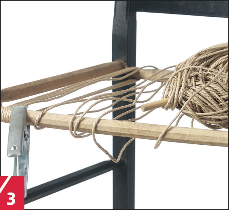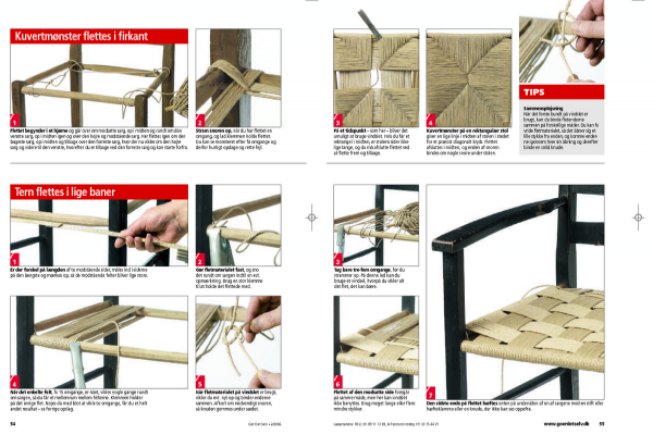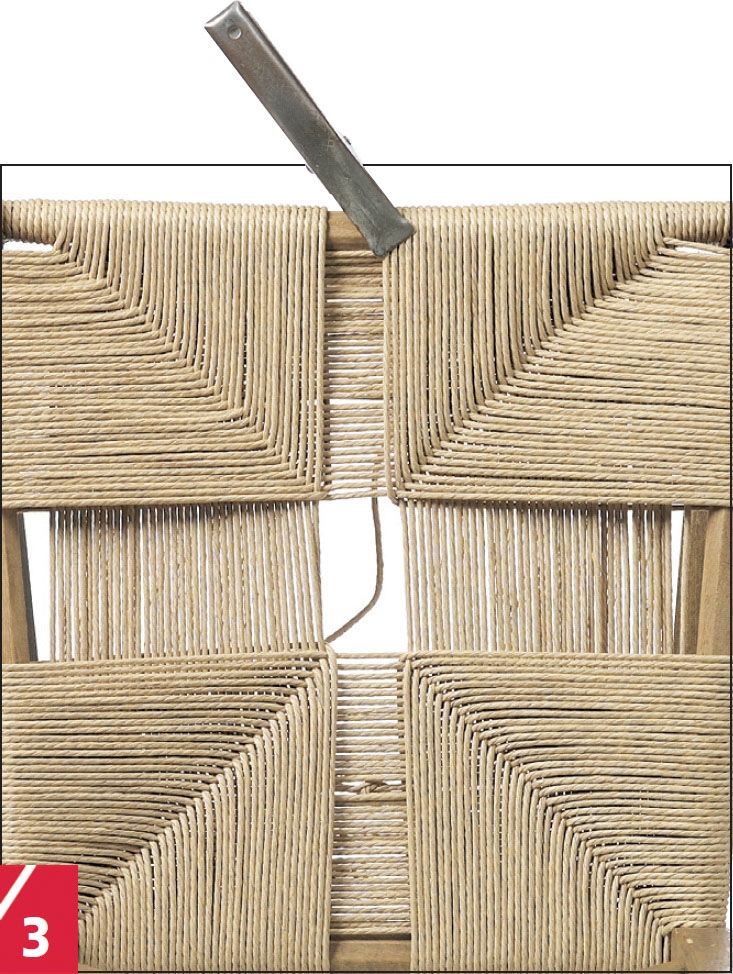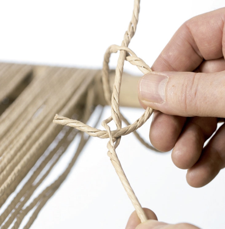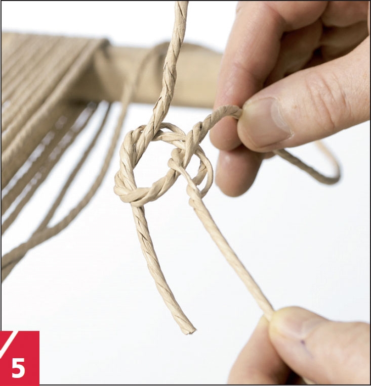 Når fletmaterialet på vindslet er brugt, vikler du evt. nyt op og binder enderne sammen. Afkort om nødvendigt snoren, så knuden gemmes under sædet.