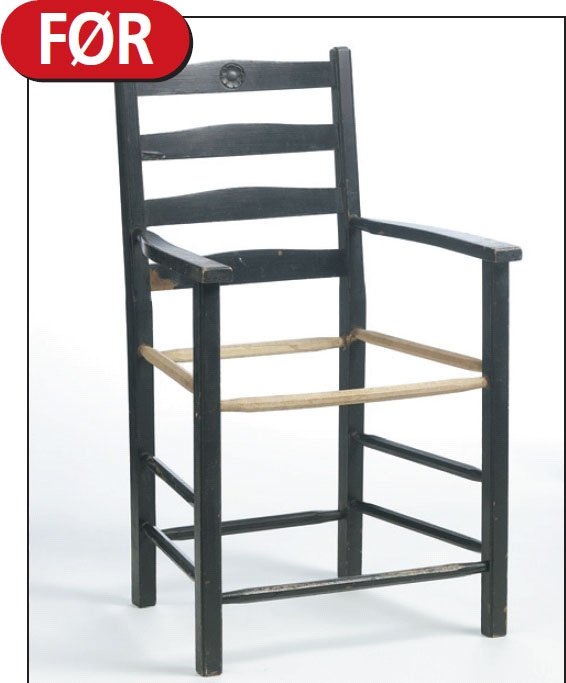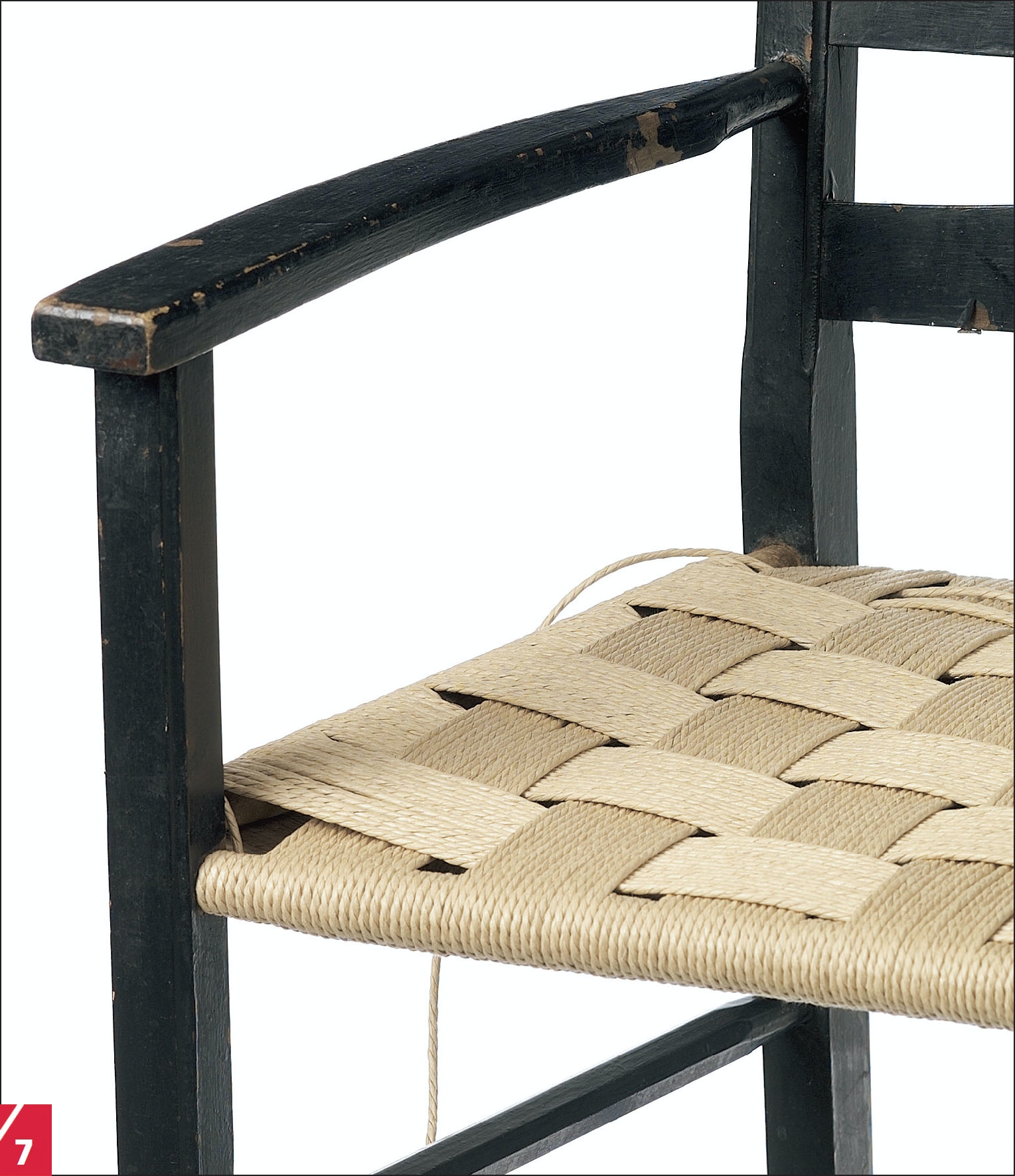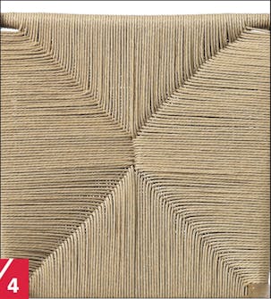 På et tidspunkt - som her - bliver det umuligt at bruge vindslet. Hvis du får et rektangel i midten, er stolens sider ikke lige lange, og du må afslutte flettet ved at flette frem og tilbage.