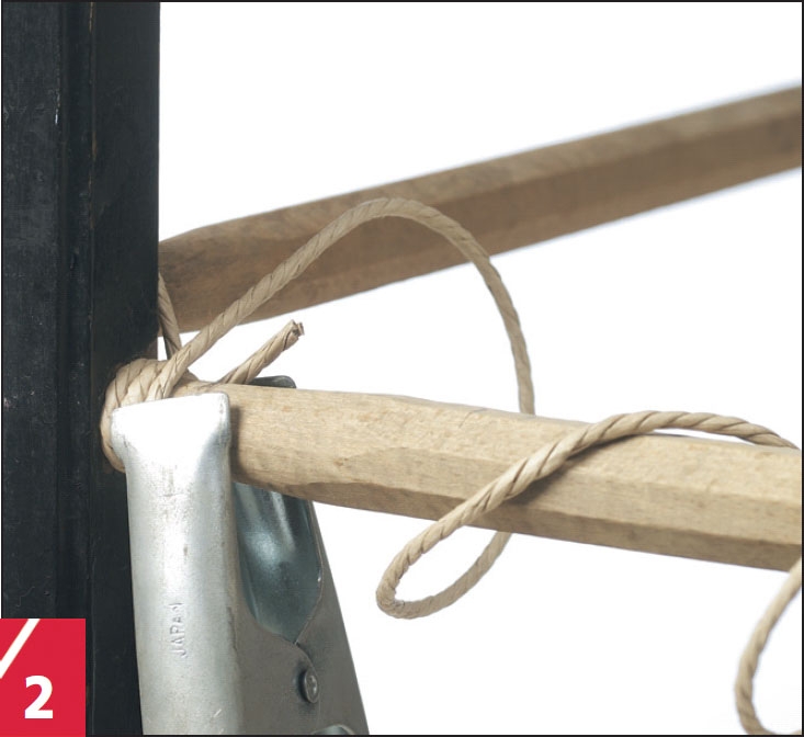 Gør fletmaterialet fast, og sno det rundt om sargen indtil en evt. opmærkning. Brug en stor klemme til at holde det flettede med.