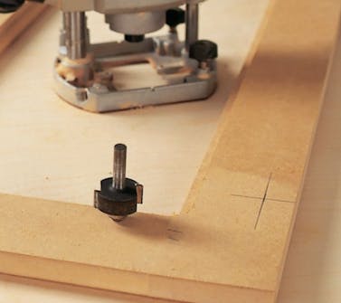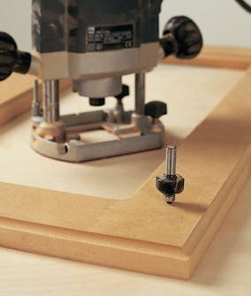 Når du har samlet de enkelte låger, fræses såvel de ind- som udvendige kanter på fronten. Til fræsningen kan du som her bruge et hulkeljern med styretap.