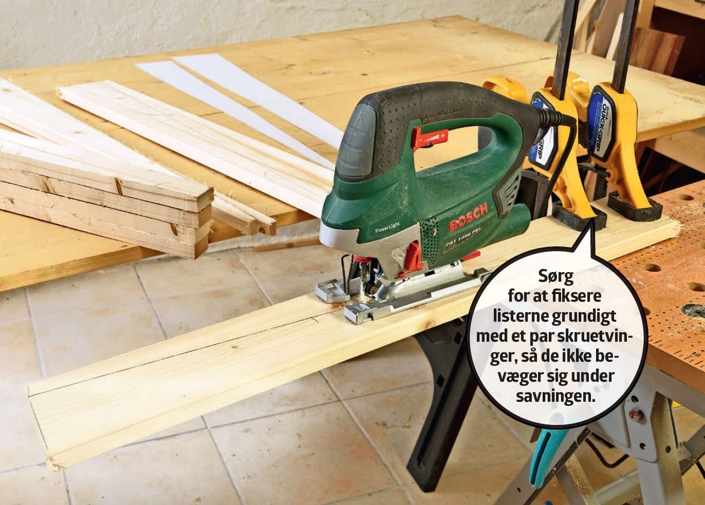Sav de otte bendele ud med en stiksav. Brug en ny klinge, så du giver dig selv de bedste forudsætninger for at lave et rent snit, der ikke flosser i kanten.