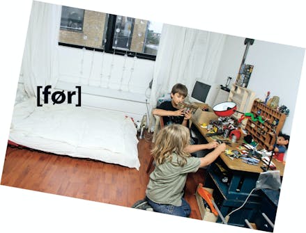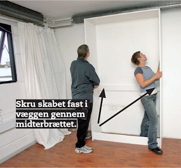 Princippet for samlingen med de særlige beslag er enkelt: Den ene halvdel af et beslag monteres på en ramme på bokssengen, den anden halvdel på skabets side. Her er det godt at være to.