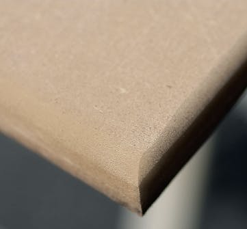 Skabssengen bygges af 19 mm mdf-plader, du kan købe på mål eller skære selv. Pladerne er skarpkantede, men de kan rundes med overfræser. Det giver et flot udseende, hvis alle udvendige og synlige kanter har en runding.
