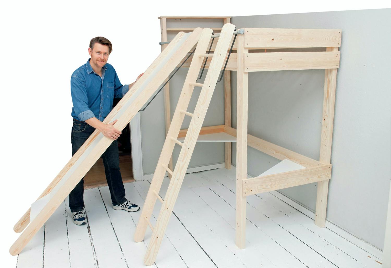 Stiger på højsenge er oftest ubehagelige at gå på, fordi de er for stejle. Det er især et problem, når en voksen skal op og skifte betræk på madrassen.