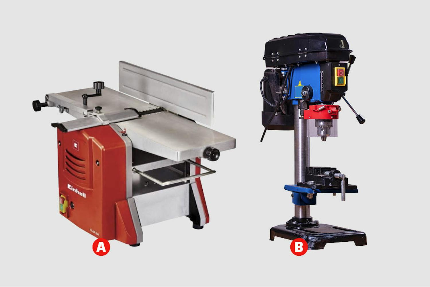 - Overfræser, kantfræser, tykkelseshøvl og søjleboremaskine
