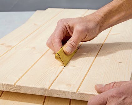 Hvis du synes, en helt glat låge ser kedelig ud, kan du save 1-2 mm dybe parallelle spor med en rundsav med føringsskinne.