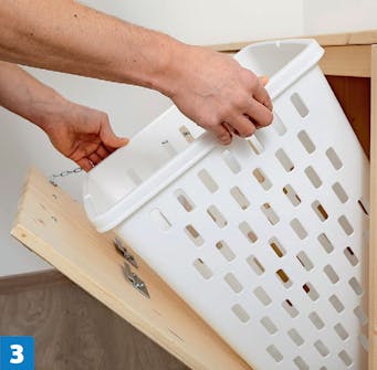 Dette smarte skab til opbevaring og sortering af vasketøj består af selve skabs-“kroppen”, tre låger og tre kurve. Det lyder simpelt, og det er det også.