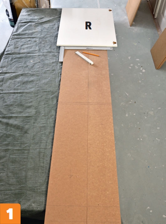 Vi bygger skabet af MDF-plade. Lågerne har vi købt i Ikea.