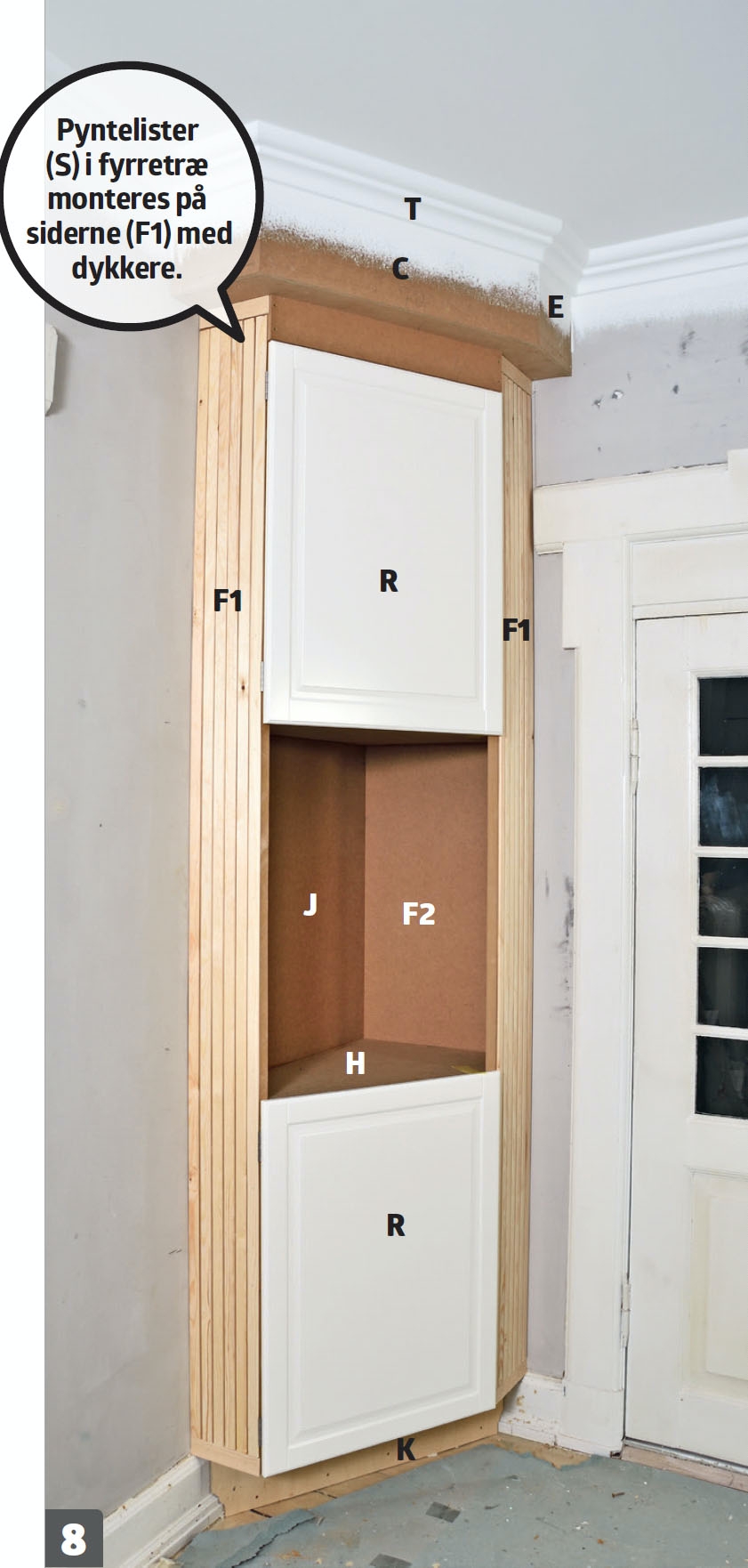 Nu, hvor skabet er bygget, er det på tide at lave de detaljer, der får skabet til at ligne noget, der altid har boet i hjørnet af stuen.