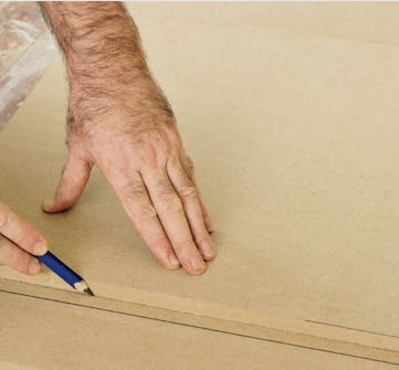Tegn de tre sider op på en mdf-plade på 16 mm eller mere - er pladen for tynd, er den lidt sværere at samle. Fronten kører helt igennem, sidestykkerne støder ind til bagsiden af fronten.
